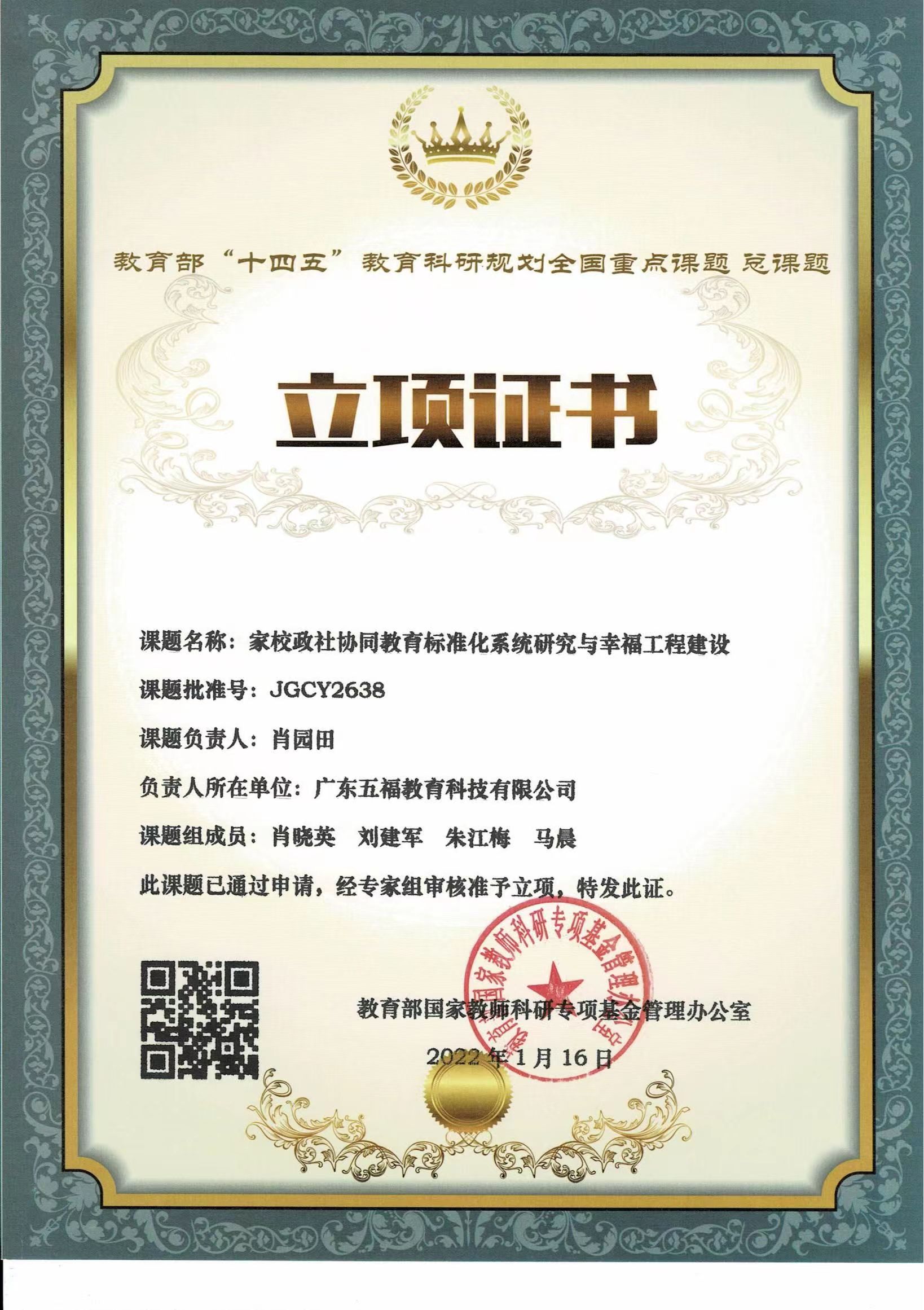 课题立项证书